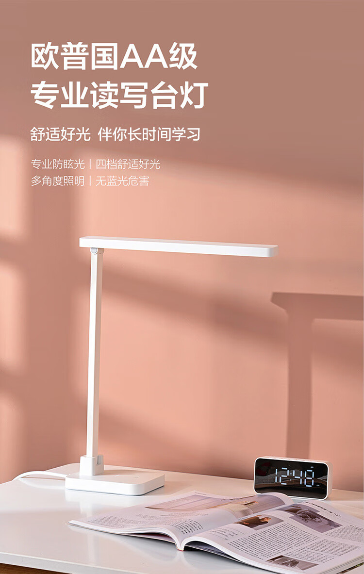 欧普(OPPLE)LED台灯学习护眼灯国AA级床头灯卧室宿舍阅读 四档调光 多角度