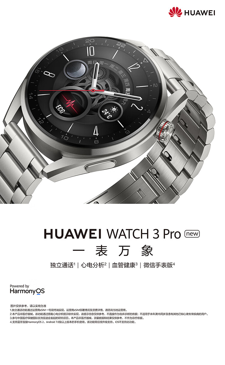 华为(HUAWEI)WATCH 3 Pro New 华为智能手表 棕色真皮表带 时尚款 高端材质/专业健康管理
