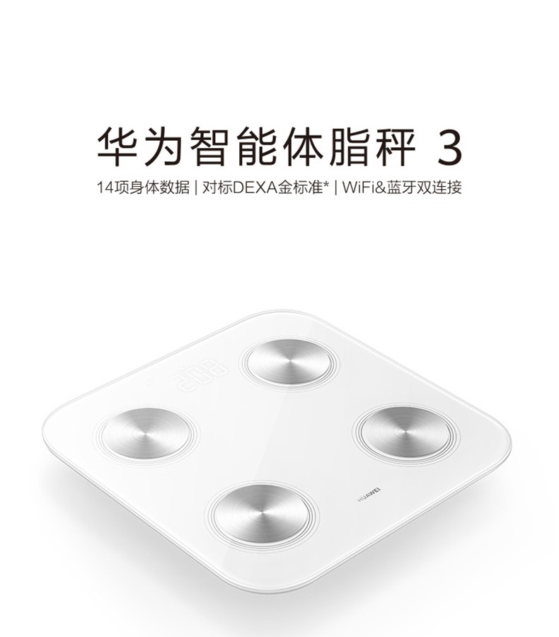 华为(HUAWEI) 智能体脂秤3代蓝牙wifi家用成人精准测量电子称测脂肪体重健康体质减肥男女 华为智能体脂秤3